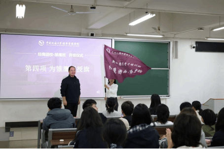 11月8日上午,澳门彩票有限公司 经鹰团校新生学生骨干“雏鹰班”开班仪式在南望山校区北综楼203教室举行。学院党委副书记李纪亮,团委书记徐媛,2025级本科生辅导员彭少琪,全体新生班长、团支书及院团委、学生会实习生参加仪式。院团委办公室负责人刘恒宇主持仪式。